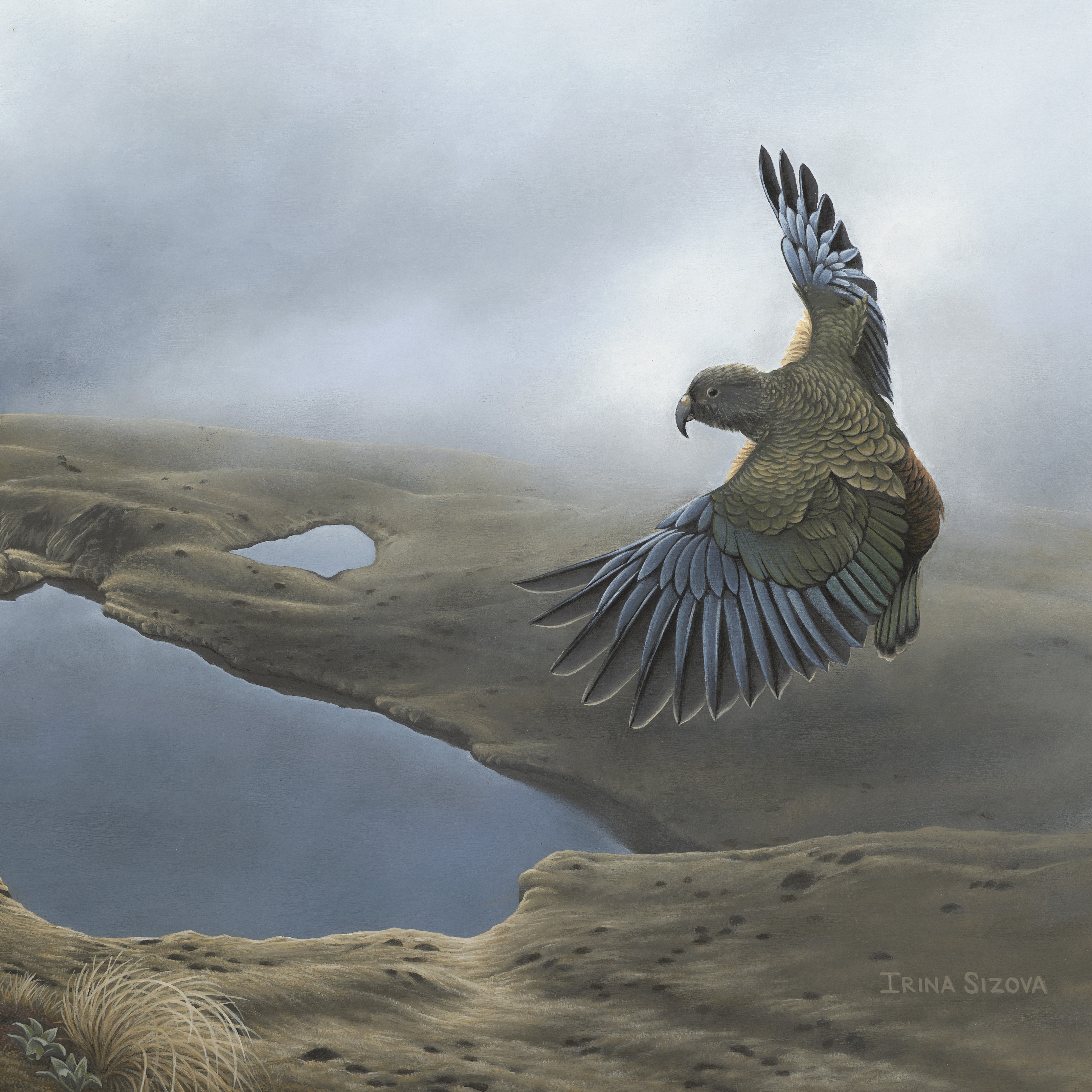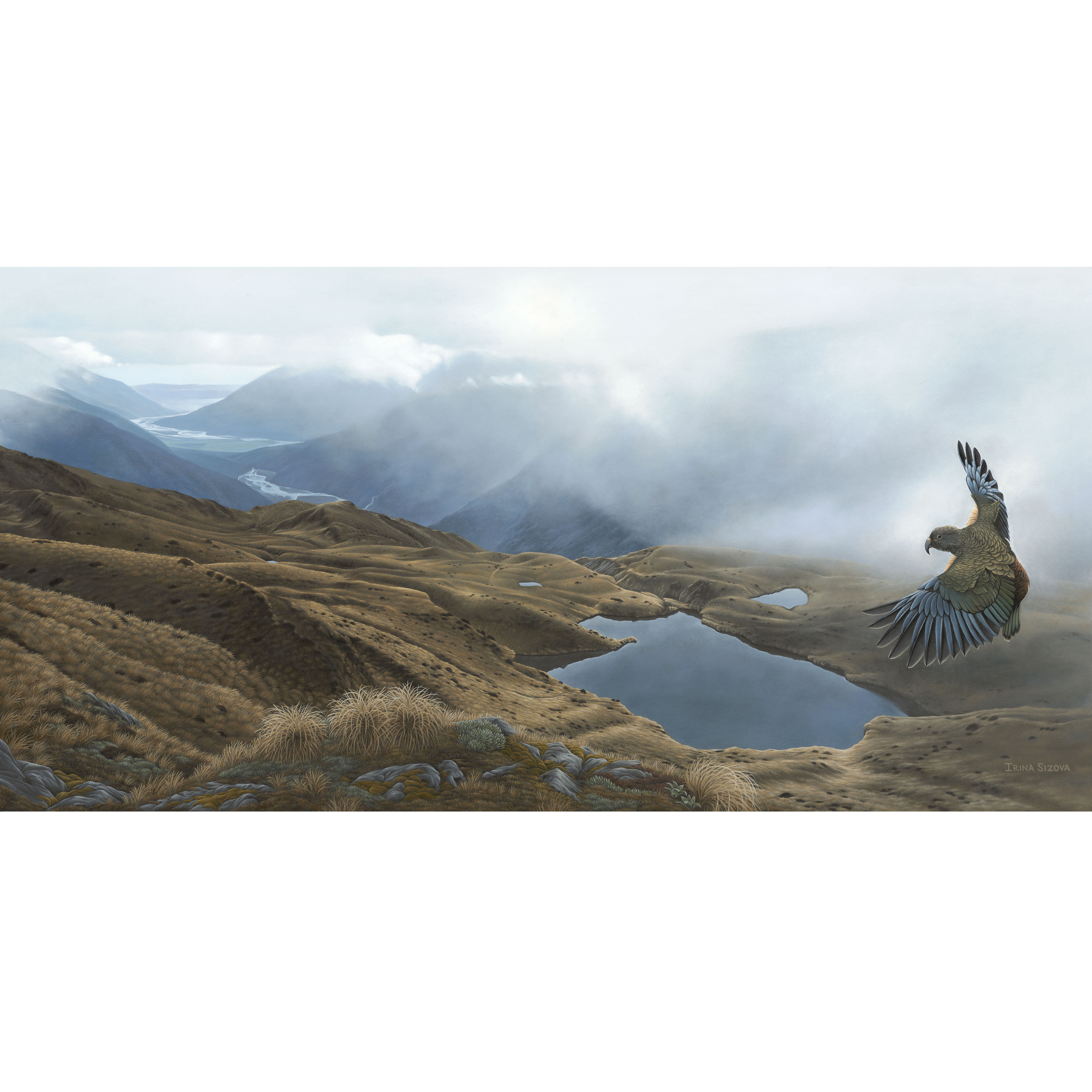 Kea at Kelly Range – 550x275mm Medium unframed print $450